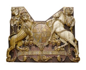 Featuring the royal coat-of-arms supported by a lion and a unicorn, the stern section of the Royal Charles can still be seen in the Rijksmuseum.