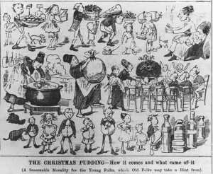 Christmas pudding cartoon in the 1884 Christmas edition of The Figaro